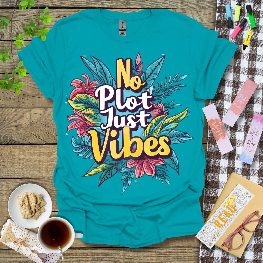 Who needs a storyline? This No Plot, Just Vibes graphic T-shirt is perfect for book lovers who live for the aesthetics, emotions, and chaotic storytelling!