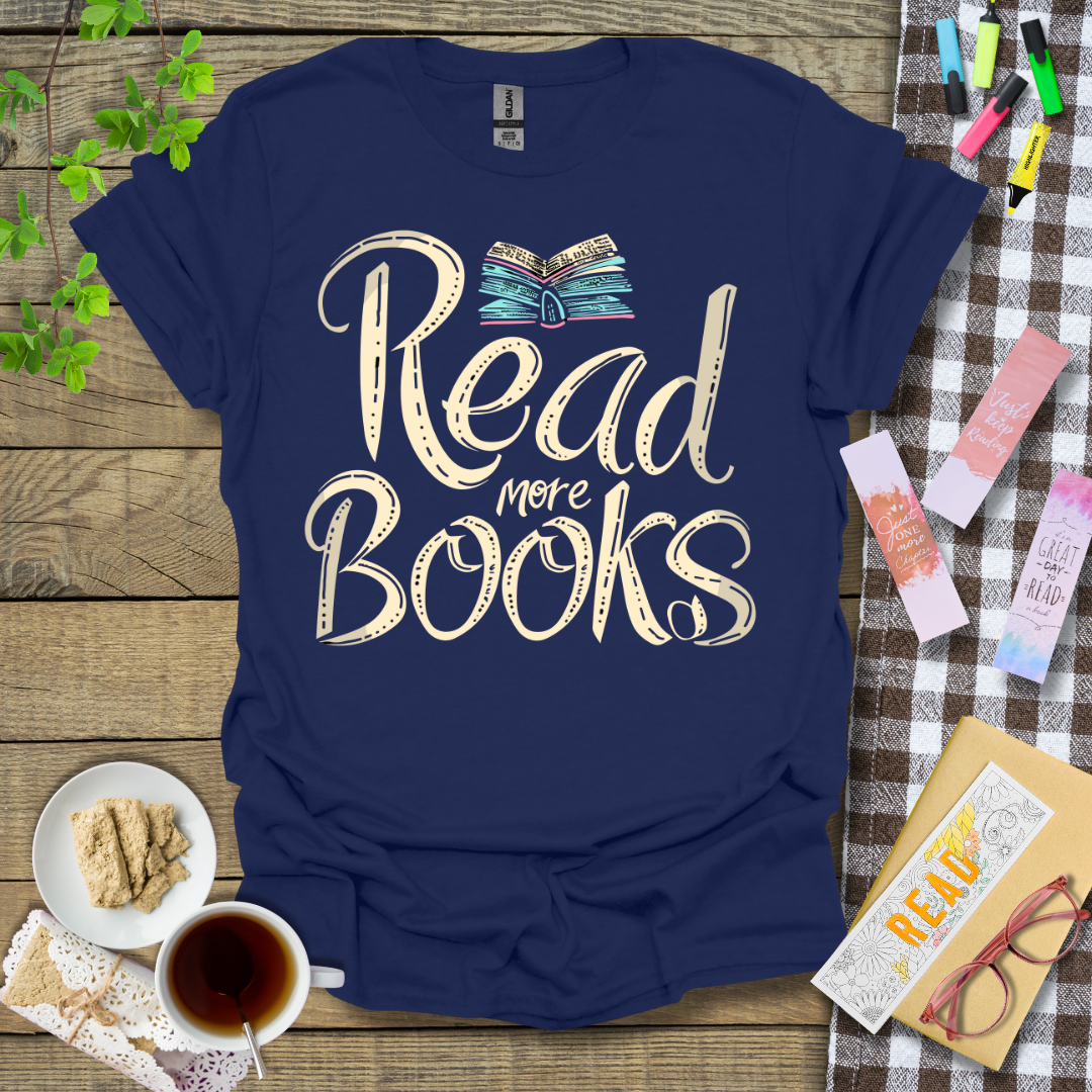 Promote the joy of reading with this Read More Books graphic tee! The perfect shirt for bookworms, literature lovers, and cozy reading days.
